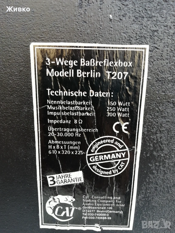 Продавам трилентови тонколони CAT, BERLIN T207. С много добър външен вид и чудесно работещи.