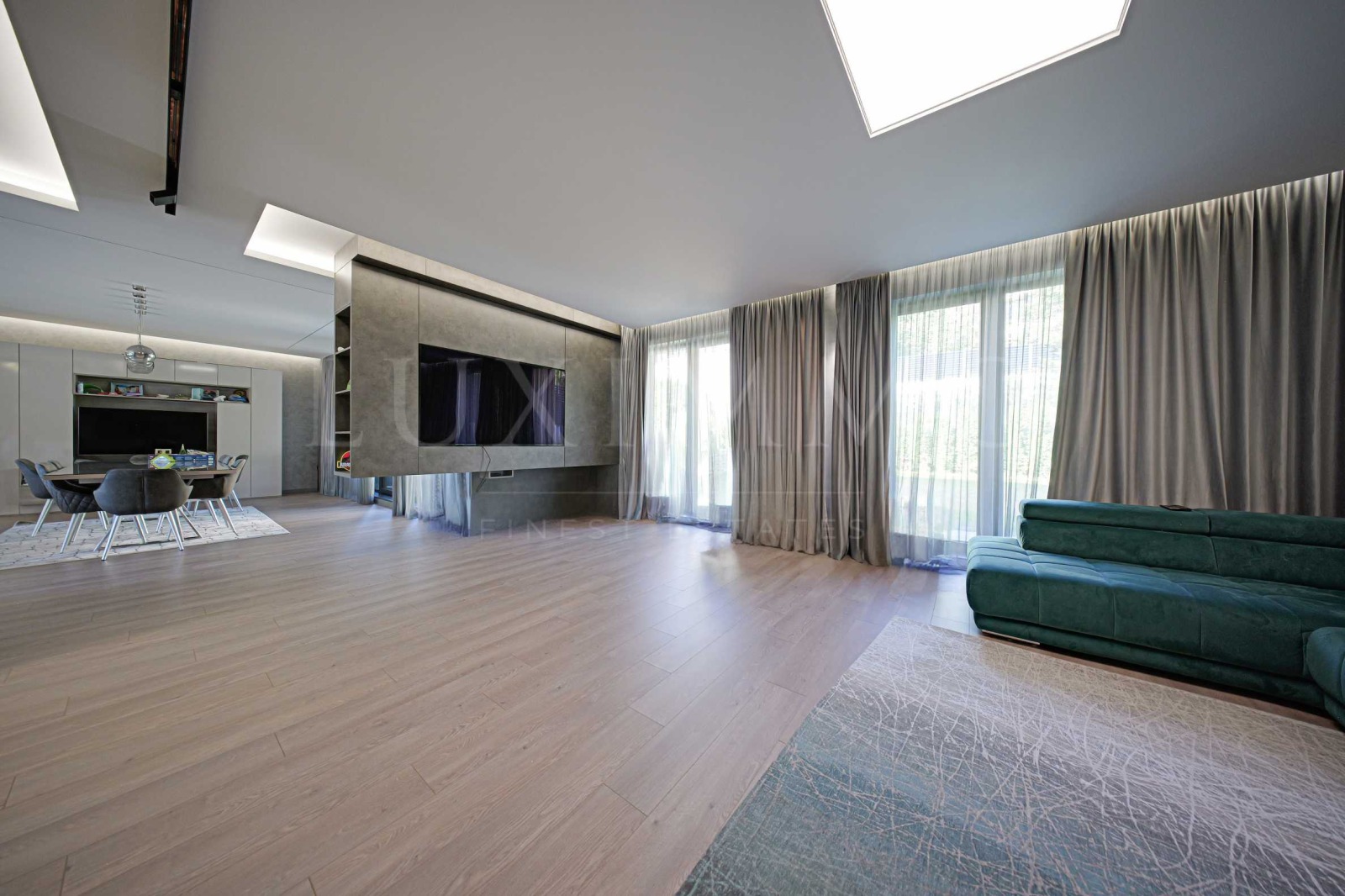 приземен етаж просторна дневна, голяма кухня с гледка към София и излаз към озеленения двор с панорамна гледка към Витоша;