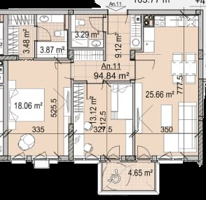 Жилището предлага функционално разпределение просторна дневна с кухненски бокс и излаз на тераса, две спални, две санитарни помещения и източно изложение, което осигурява светлина и уют през целия ден.