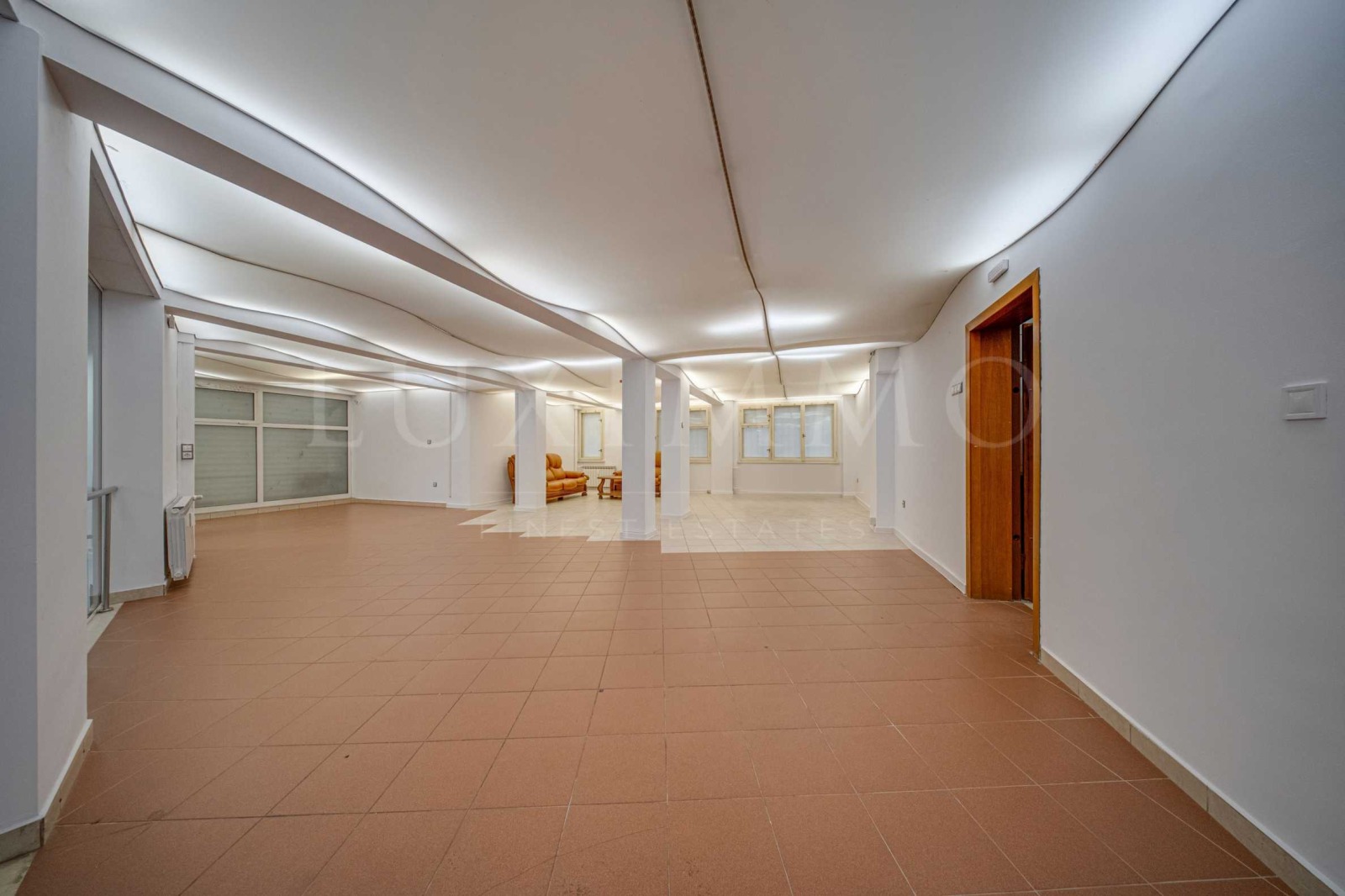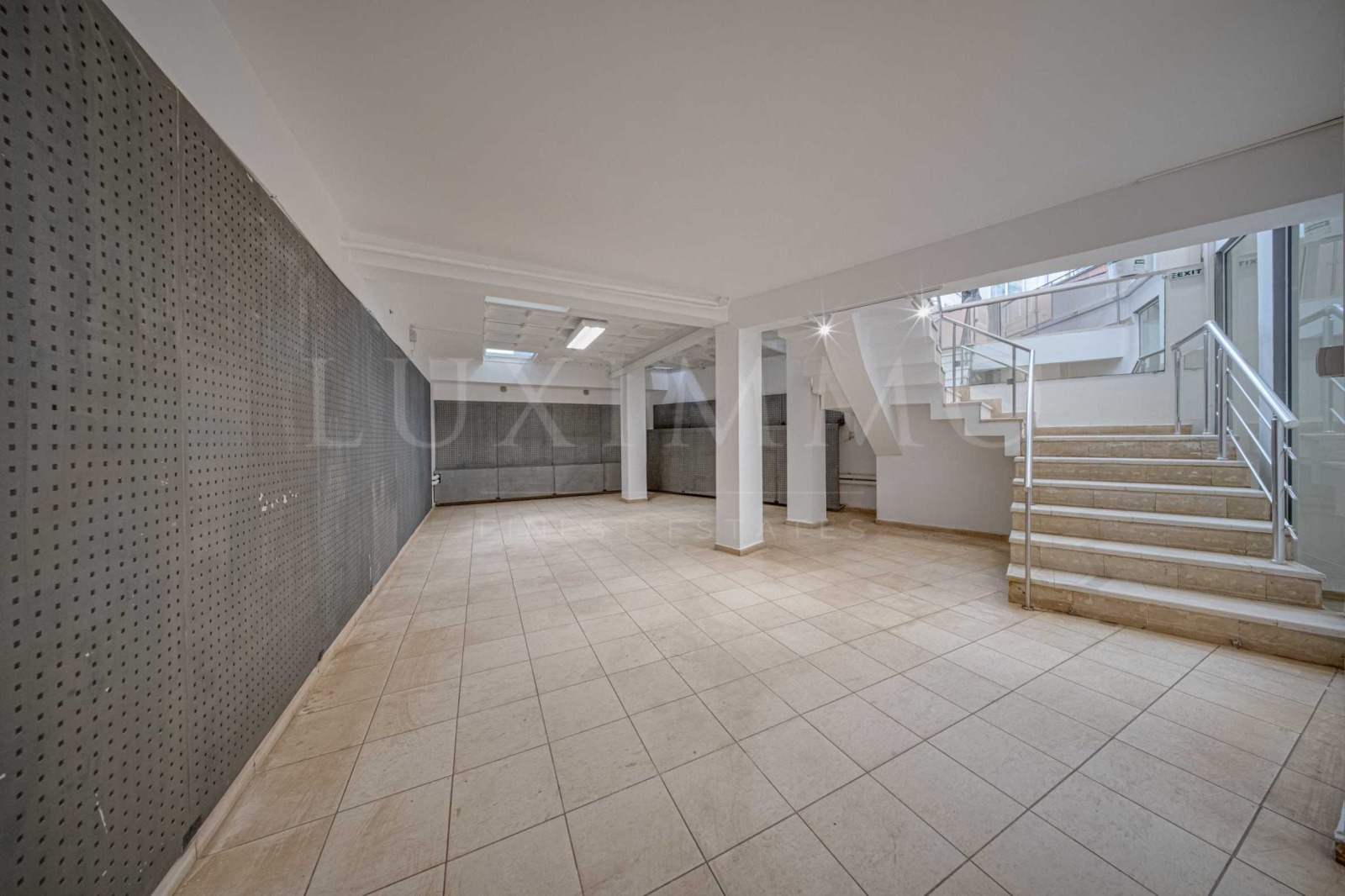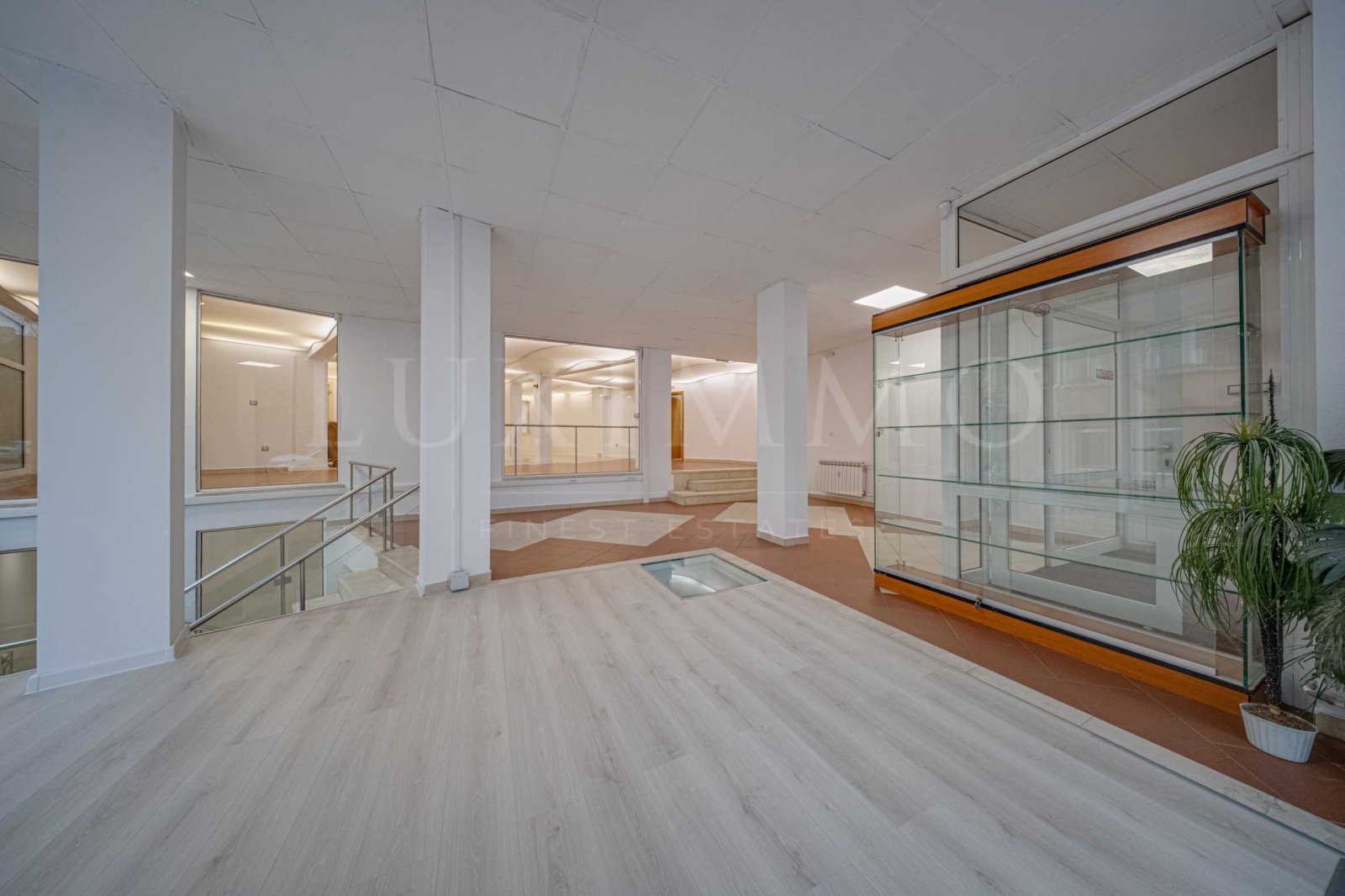 Помещението е на две нива с обща площ от 442 кв. м, просторно и светло и със следното разпределение: