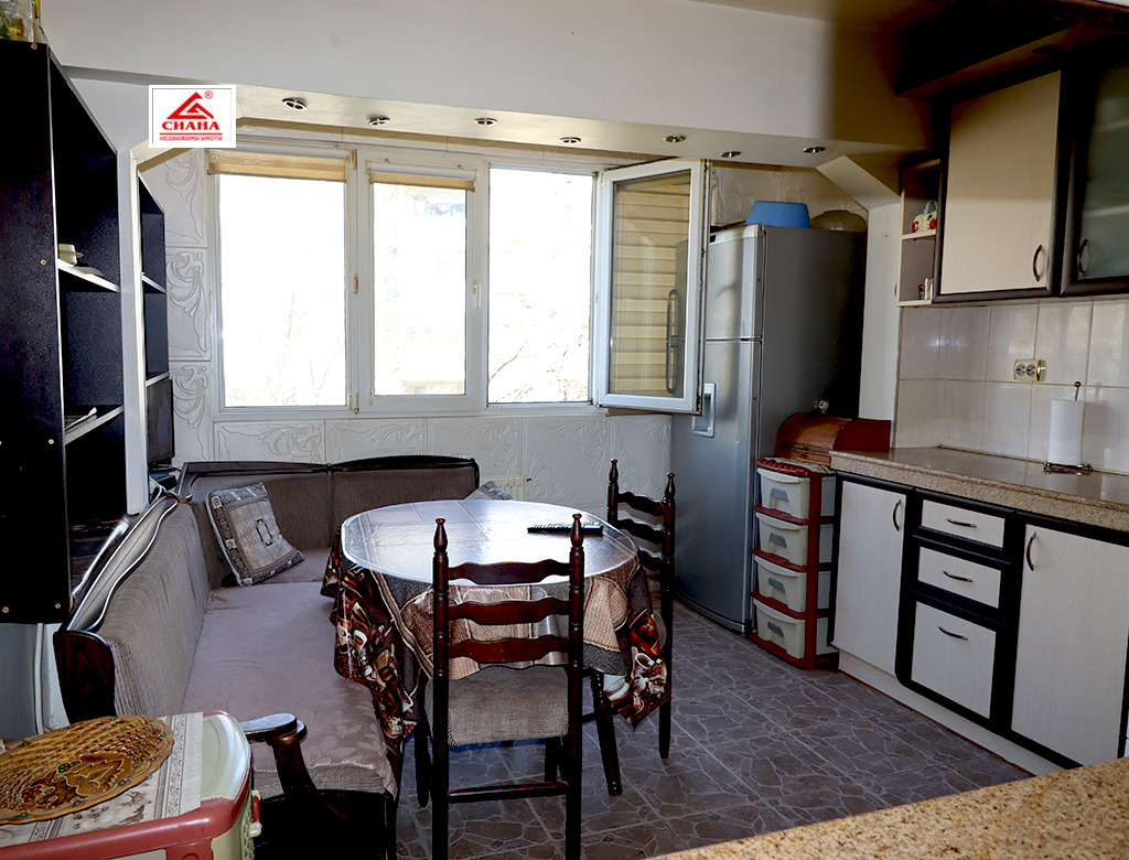 Сиана Недвижими Имоти продава ексклузивно тристаен апартамент в квартал Мидия Енос на град Русе, в близост до Централна ЖП гара. Мястото е комуникативно и удобно, в непосредствена близост до детска градина и училище, медицински център, множество търговски обекти и с бърз достъп до главни улици и спирки на градски транспорт. Площта му от 77.74 кв.м. е разпределена в коридор, хол, спалня с остъклена тераса, втора спалня, кухня с усвоена тераса, баня с тоалетна, перално помещение и килер. Жилището е в добро състояние, с PVC дограма, ламинат и теракот по пода, поставена външна топлоизолация. Отоплението е чрез пелетна камина, която е позиционирана на терасата, като са монтирани и климатици. Имотът се продава обзаведен и оборудван. Към него има и избено помещение с площ 3,65 кв.м. Около блока се паркира свободно.