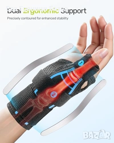 Осигурява опора на палеца и китката при работа, сън и ежедневни дейности
