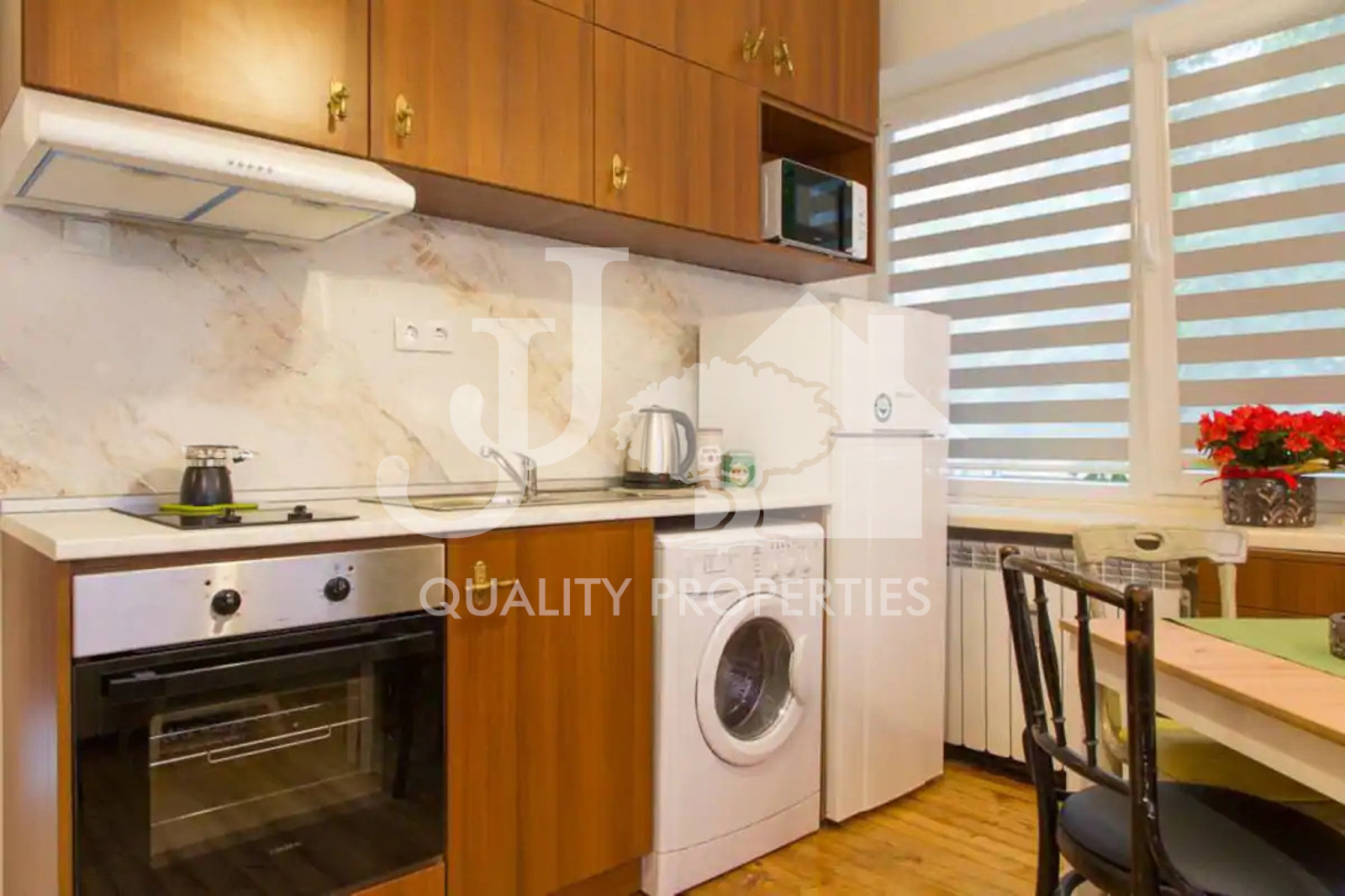 Студиото се отдава напълно обзаведено и оборудвано с всички необходими електроуреди и мебели, готово за нанасяне. Изложението към вътрешен двор гарантира тишина и спокойствие, далеч от градския шум.
