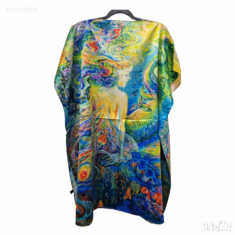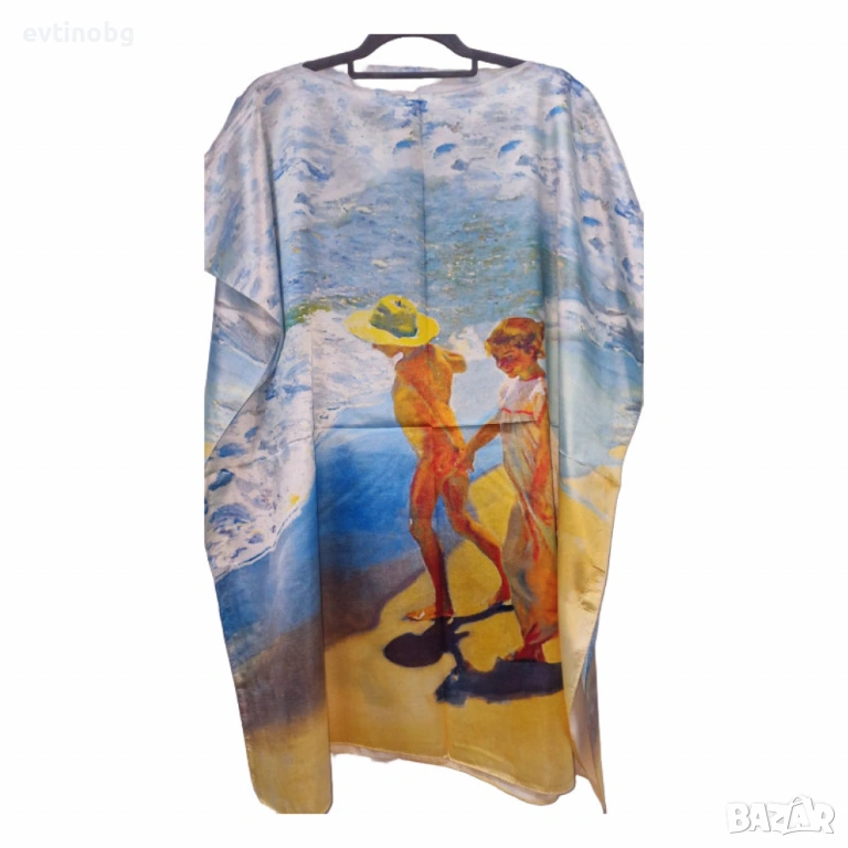 Лятна плажна туника от коприна, с артистични и морски десени → Обява 54133531