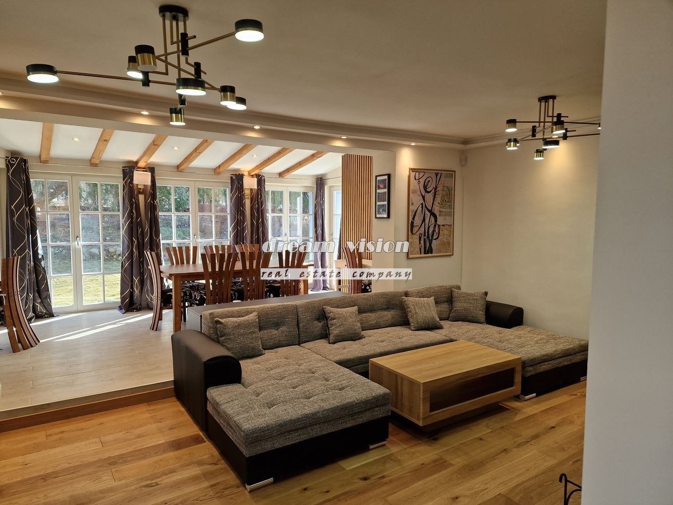 ДРИЙМ ВИЖЪН НЕДВИЖИМИ ИМОТИ отдава качествено завършена еднофамилна къща на тихо и спокойно място в близост до магазин ИКЕА, РИНГ МОЛ и Бизнес Парк София. Състои се от два етажа, на които са разположени просторна дневна с трапезария и кухненски бокс с френски врати с излаз към двора; две тераси, четири спални, ателие с сауна към него, три бани с тоалетна, отделна тоалетна, мокро помещение/лятна кухня. Отопление на конвектори и чрез камина, която създава усещането за уют в зимните дни. Къщата е с 20 см изолация, с шест камерна троен стъкло пакет дървена дограма, което допринася за енергийната ефективност на имота. Просторен, добре озеленен двор с пързалка, люлки, батут. В близост има и спирка на градският транспорт. Покрити паркоместа за два автомобила. В наемната цена е включена поддръжката на двора от градинар.Оферта в агенцията 9124. Всички наши обяви ги работим с колеги. Още наши оферти може да намерите на www.dreamvision.bg Телефони за връзка: 02/421 96 35 ; 0886 13 22 91 Димитър Георгиев