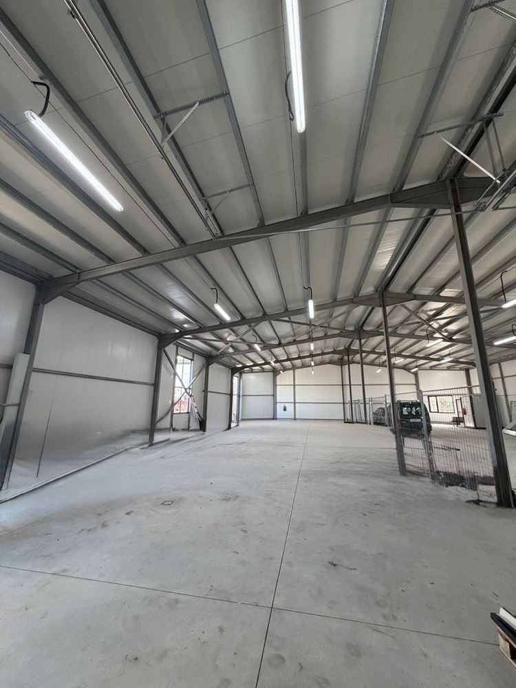 Оферта 86711. Източна индустриална зона, ново термопанелно хале 600 кв.м. Построено 2026 година. С две ролетни врати с ширина 4,50м, тир достъп, паркоместа в парцела, който е 1 450 кв.м. Има трифазен ток, 2 тоалетни, сифони и офис помещение. Може да се раздели на 2 по 300 кв.м.