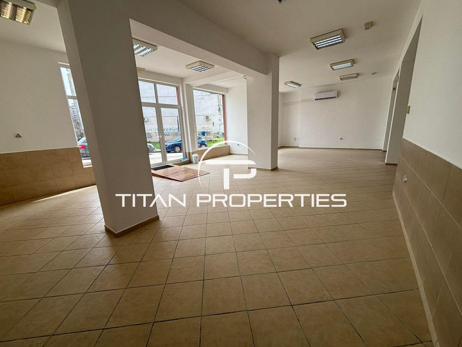Помещението от 125 кв.м. пространство тип 'open space' със санитарен възел, широки витрини (9 м) и височина 3,50 м.
