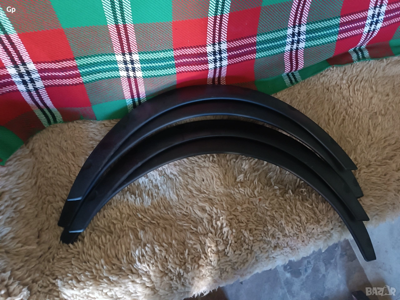 4бр. Универсални гъвкави раздувки/вежди за калници на автомобили, изключително широка арка на колелата Характеристики: -100% чисто нов в оригинална кутия. -Висококачествено шприцване на калниците с гладко и прецизно рязане на ръба. -Предпазва колелото от кал, драскотини, пясък и други външни повреди. -Надстройте автомобила си с освежаващ външен вид. Спецификация: -Цвят: Черен -Материал: Полипропилен -Количество: 4 броя комплект (2 предни и 2 задни) За да монтирате разширителите ще пробиете дупки в калниците си. Този комплект разширители е универсален, тоест не е за конкретна марка и модел автомобил. При монтажа е възможно да се наложи да бъдат леко подрязани, или нагряти с пистолет за горещ въздух, за да се получи перфектната форма.