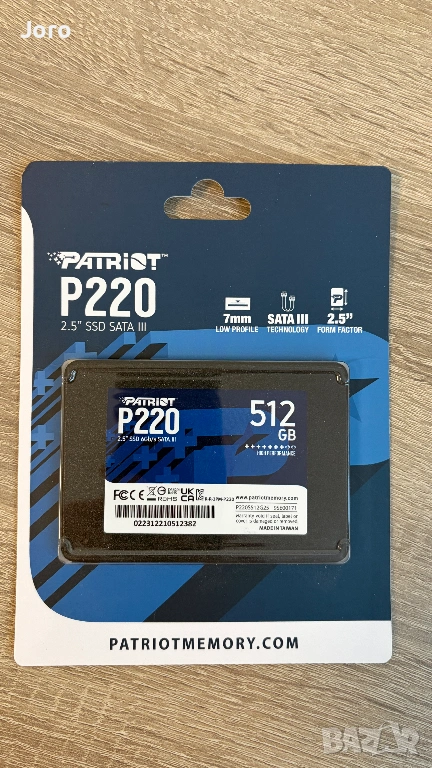*Нови* SSD Дискове PATRiOT P220 SATA 6Gb/s 512GB → Обява 54133931