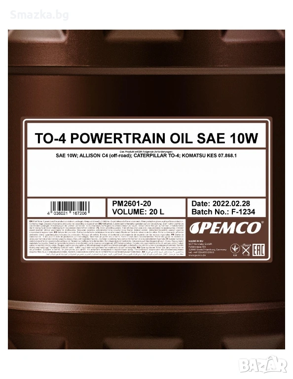 Модел: TO-4 POWERTRAIN OIL SAE 10W, синтетично