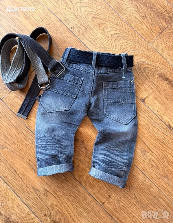 Страхотен нов модел на Next разм.2-3г./98 Мек дънков плат, сиво яко родео, фабрично трити с намачкан ефект, големи яки джобове отзад, талия с ластик за коригиране.