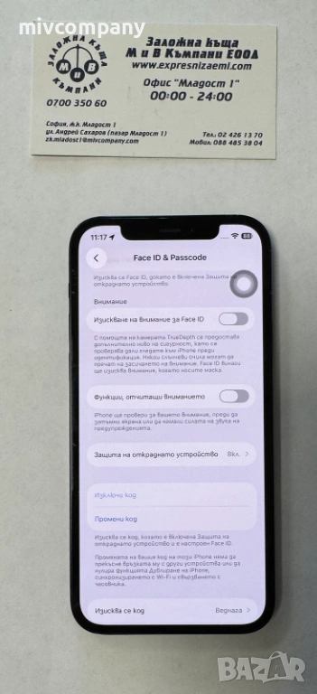 С нормални следи от употреба.Тестван и работи отлично.Без айклауд има включена функция(защита на откраднато устройство),която не можем да махнем защото изисква лицево разпознаване(паролата за отключване на телефона я знаем).