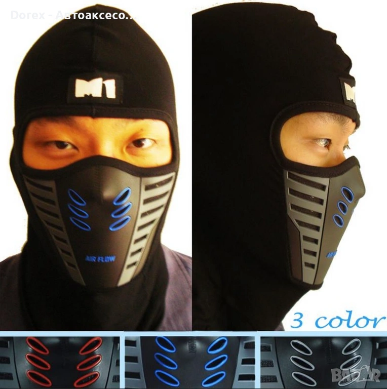 Практичен аксесоар за защита и комфорт при каране на мотор или спорт на открито. Комбинира функцията на боне и защитна маска, като осигурява по-добро дишане и предпазва от прах, вятър и замърсявания.