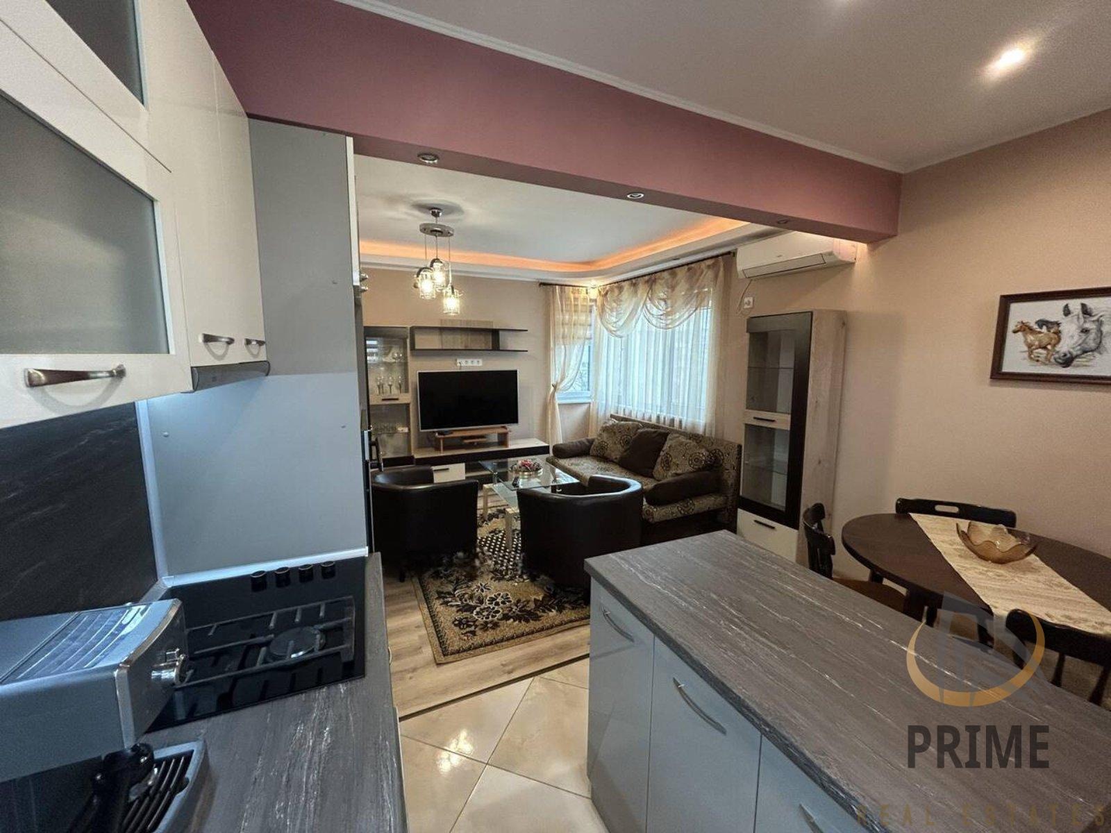 Състои се от голямо входно антре, просторен хол с кухня и трапезария с тераса, две напълно обзаведени спални, баня с тоалетна.