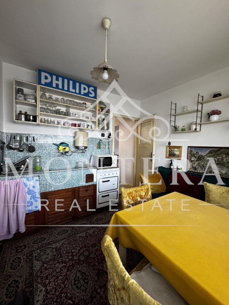 Имота има потенциал да се преустрои в три спални и днена с кухненски кът, както и да се обособи второ санитарно помещение или перално.