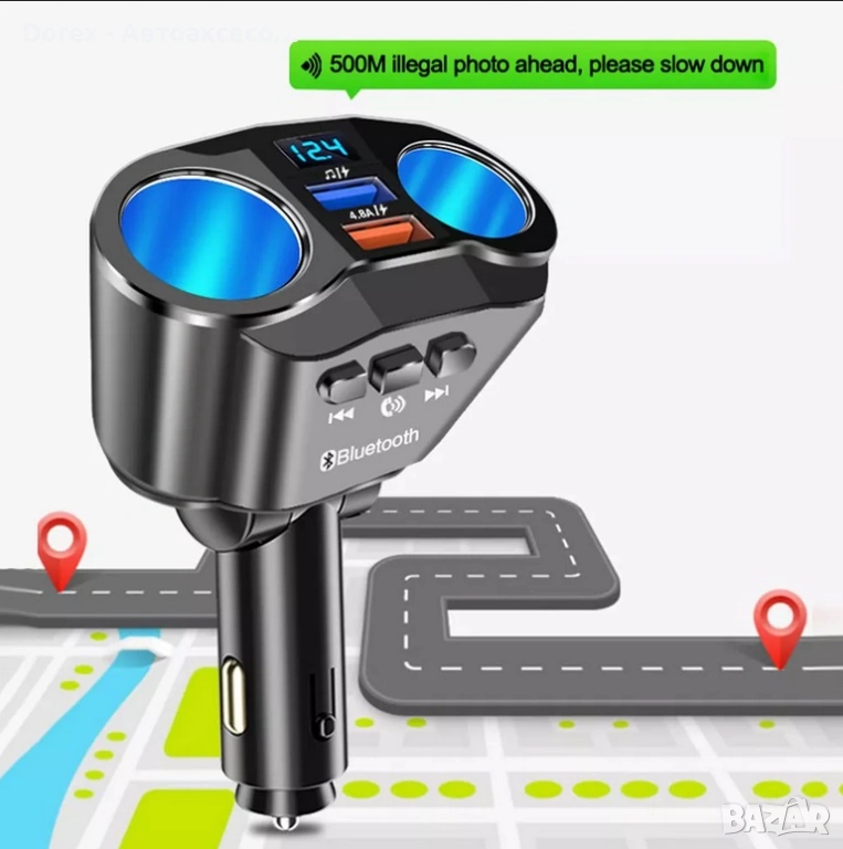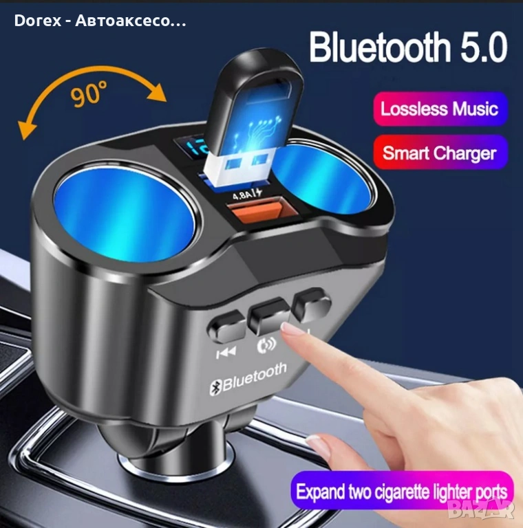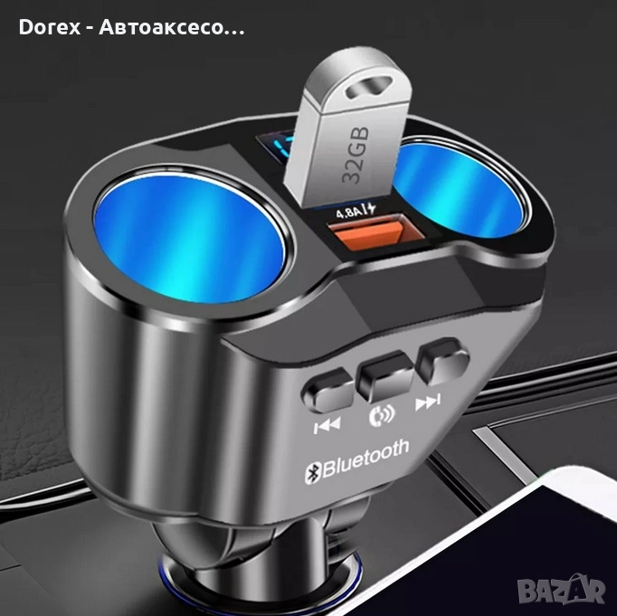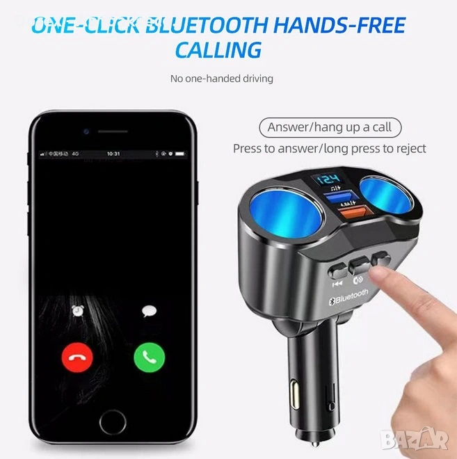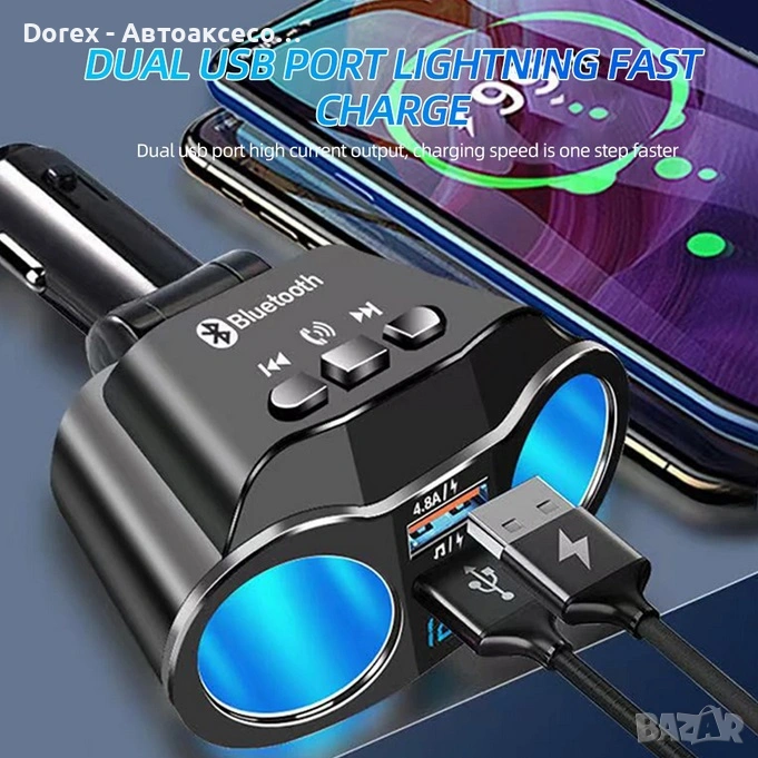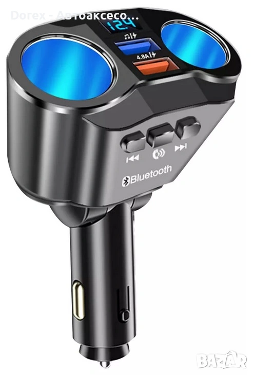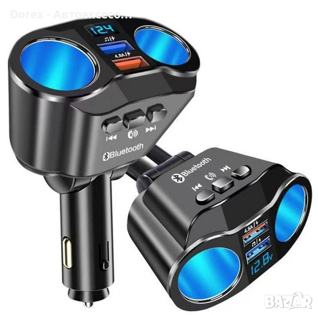 FM трансмитер и разклонител за кола с Bluetooth и 2 USB порта е многофункционално устройство, което комбинира бързо зареждане, безжична връзка и удобство при шофиране. С него лесно можеш да слушаш музика, да провеждаш разговори hands-free и да зареждаш устройствата си едновременно.