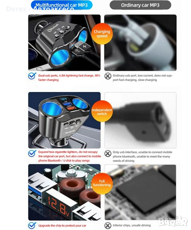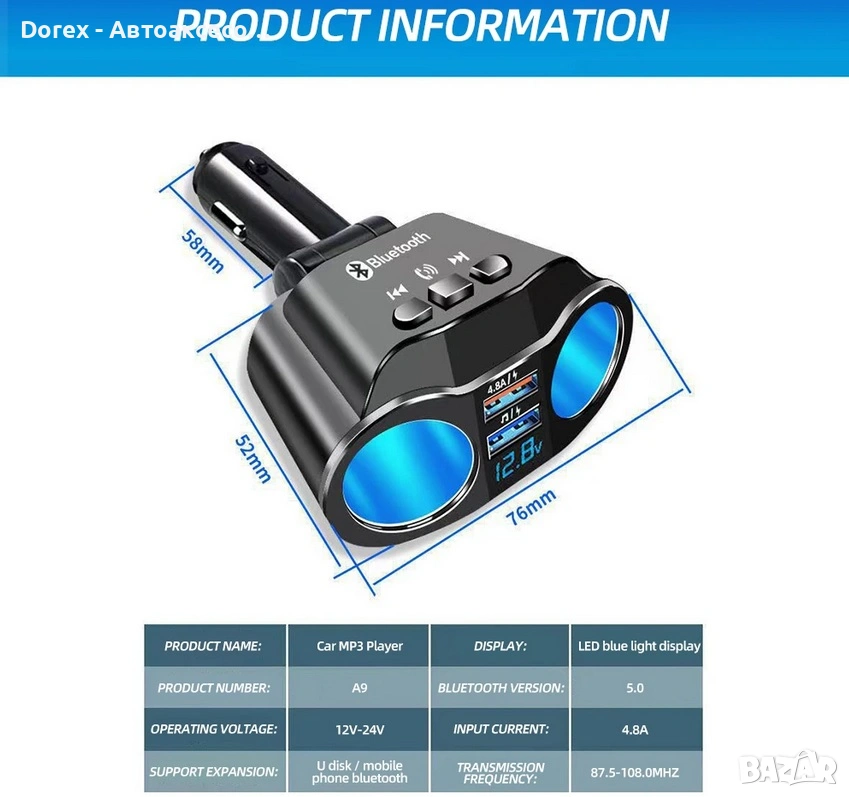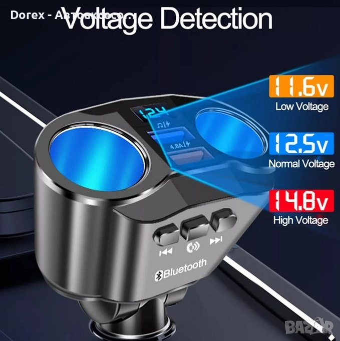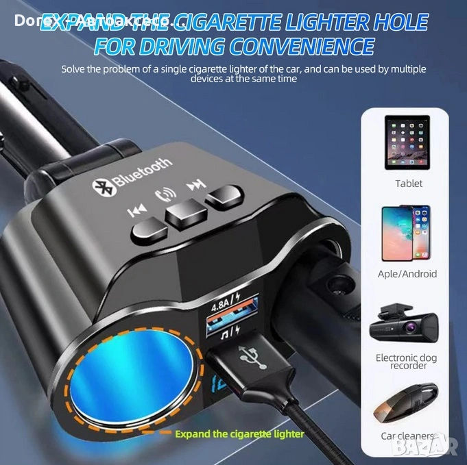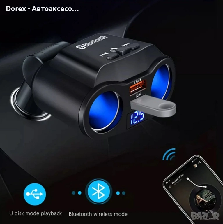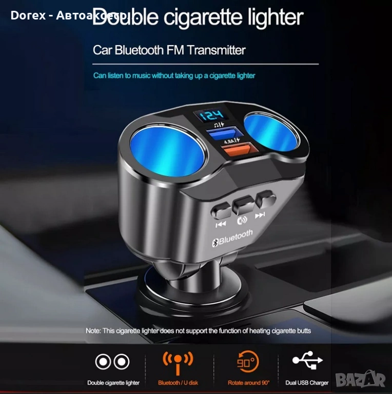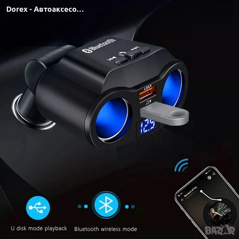 FM трансмитер и разклонител за кола с Bluetooth и 2 USB порта е многофункционално устройство, което комбинира бързо зареждане, безжична връзка и удобство при шофиране. С него лесно можеш да слушаш музика, да провеждаш разговори hands-free и да зареждаш устройствата си едновременно.