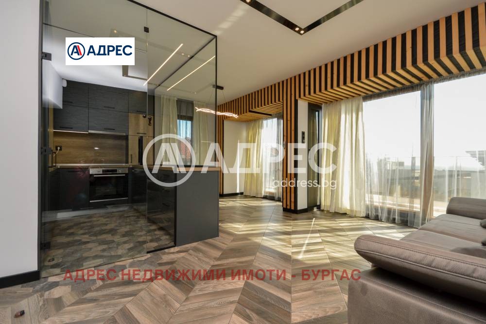 Имотът е обзаведен само с висок клас мебели и материали, разполага с подово отопление което се захранва от термопомпа, имаме конвектори във всички стаи, трислоен паркет в спалните, имаме изграде специална стъклена преграда около кухнята за изолиране на всякакви миризми при готвене.