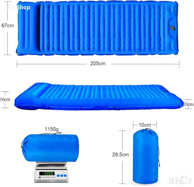 Водоустойчив, износоустойчив и издръжлив – самонадуваемият надуваем дюшек за къмпинг е изработен от водоустойчива и устойчива на разкъсване 40D найлонова тъкан, достатъчно стабилна и здрава е да издържи до 200 кг. Самонадуваемият въздушен матрак е с дебелина 10 см и може да се използва директно на пода, без да се притеснявате от болки в гърба, причинени от неравни камъни, и ви предпазва от мокри повърхности.