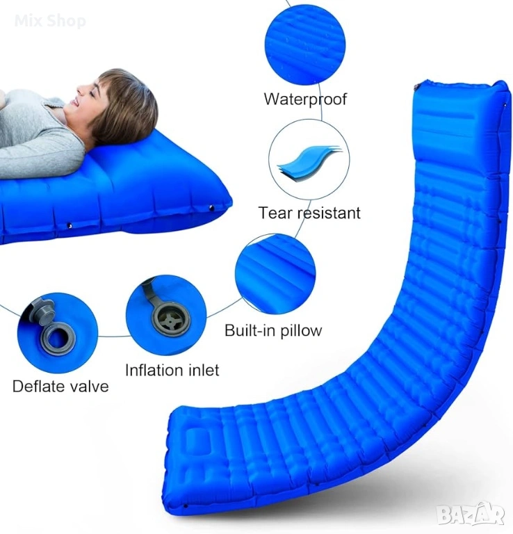 Максимален комфорт - Интегрираните възглавници на самонадуваемата постелка за спане следват извивката на главата и осигуряват опора за главата и врата за комфорт като в леглото. Уникалната вътрешна структура на постелката за спане разпределя въздуха равномерно и ви дава повече опора, по-добър баланс и добър сън, независимо дали лежите по гръб или спите настрани.