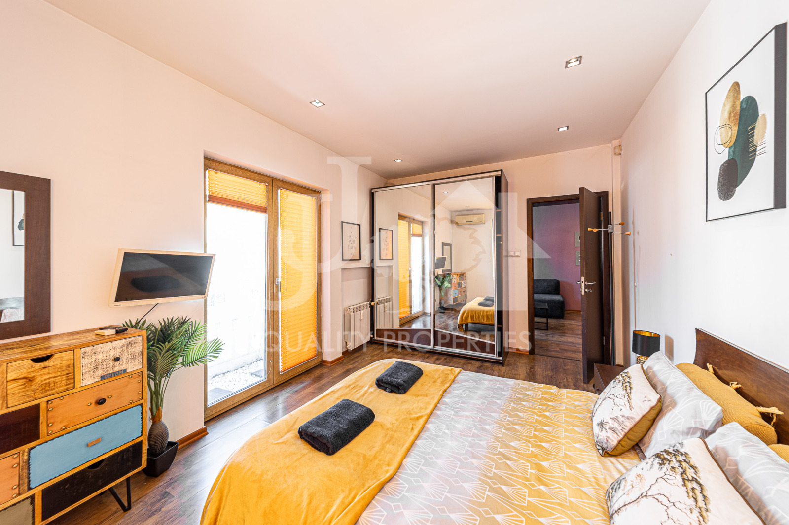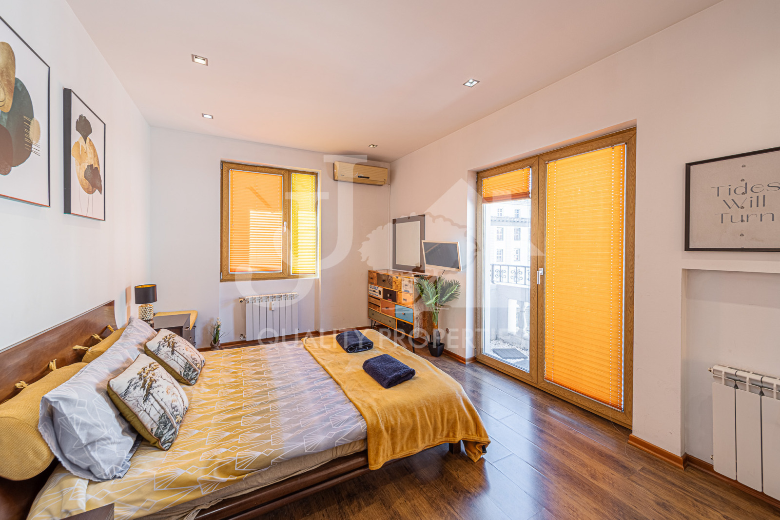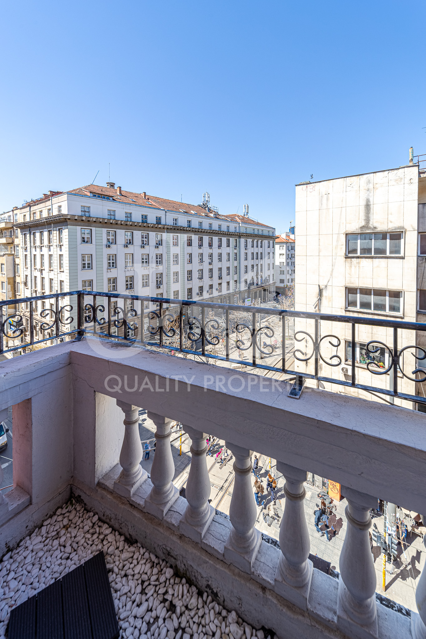 JJ Corporation предлага на Вашето внимание просторен и напълно обзаведен тристаен апартамент, разположен в сърцето на София на пл. Славейков , една от най-предпочитаните и комуникативни локации в града.Имотът е с площ от 95 кв.м и се намира на 6-ти, последен етаж в сграда с асансьор, което осигурява тишина, спокойствие и отлична осветеност. Апартаментът е с функционално разпределение и южно изложение, гарантиращо светлина и уют през целия ден.Жилището се състои от входно антре, просторен хол с кухненски бокс и трапезария, две комфортни спални, две бани с тоалетна и тераса. Предлага се напълно обзаведено и оборудвано с всички необходими мебели и електроуреди, готово за нанасяне.Отоплението е решено чрез ТЕЦ и климатик, което осигурява комфорт през всички сезони.