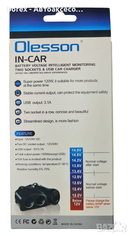 Удобен и практичен аксесоар за автомобила, който позволява едновременно захранване и зареждане на няколко устройства. С вграден дисплей за волтметър, винаги ще имате информация за състоянието на акумулатора на колата.