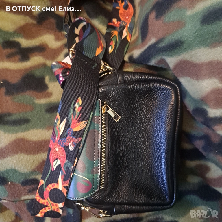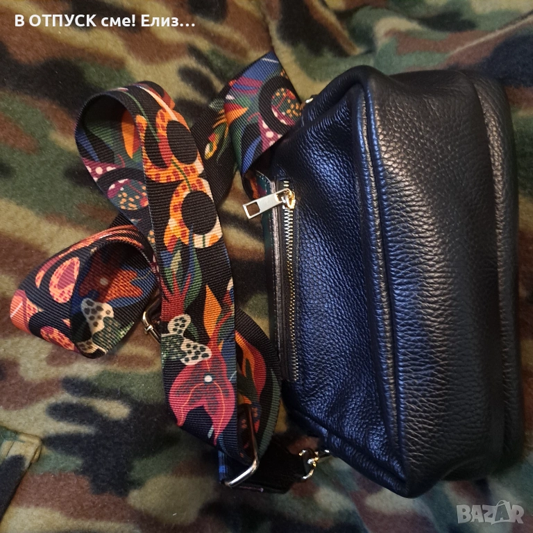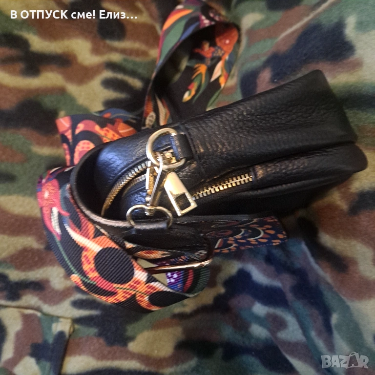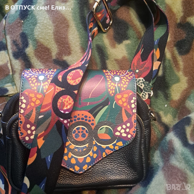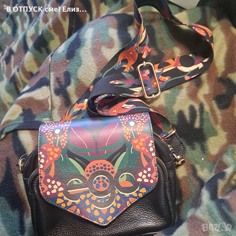 Чанта естествена кожа етно флорал принт дръжка EGO → Обява 54135284