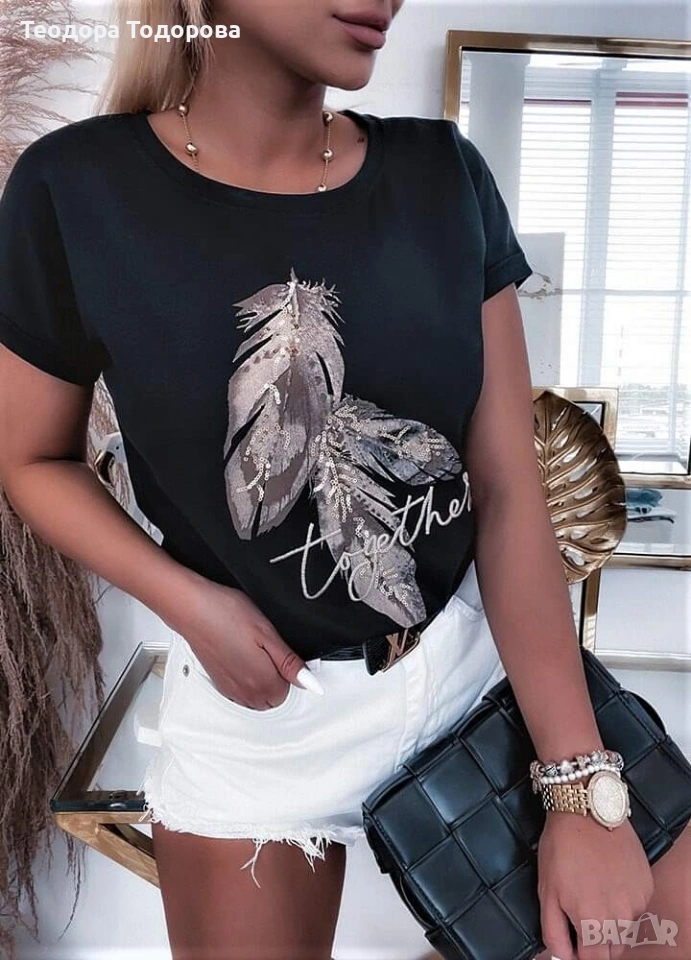 Дамски памучни тениски с отлично качество. Универсален размер. Модел пролет-лято 26г.