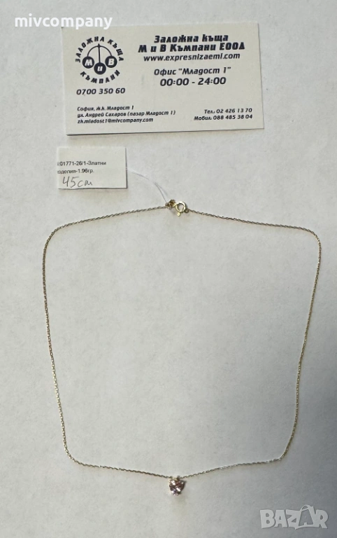 Златно колие с висулка 1.96гр.45см.