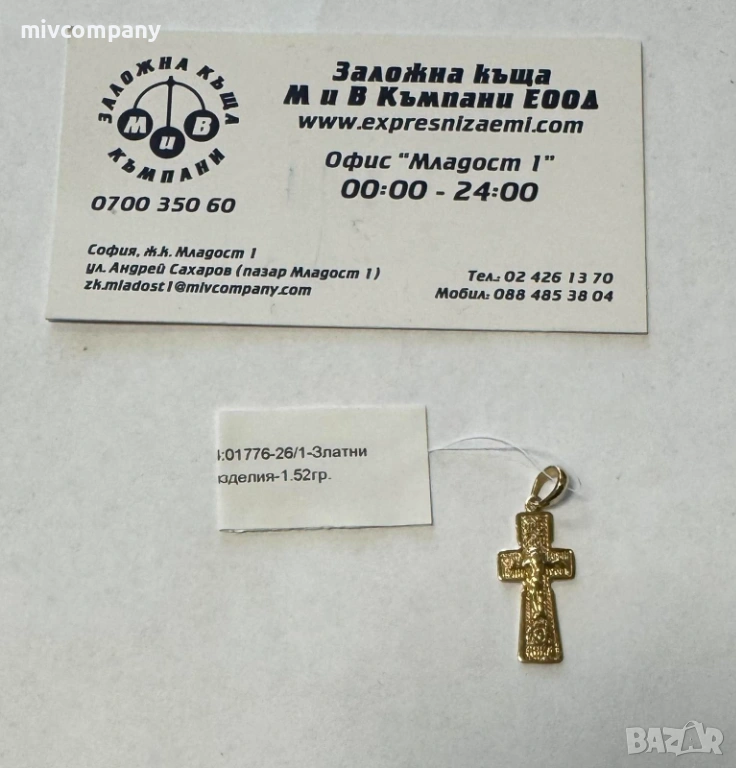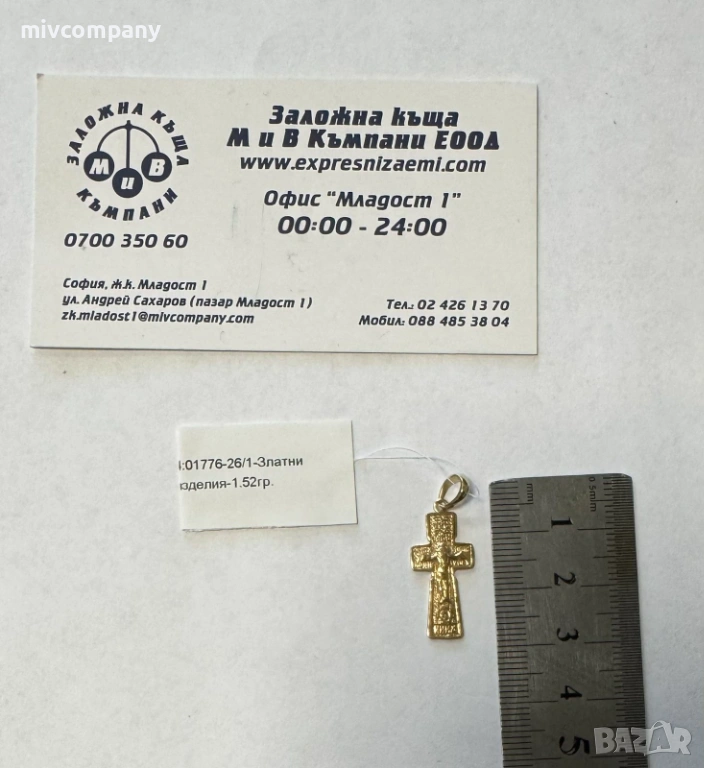 Златна висулка(кръст) 1.52гр. → Обява 54135496