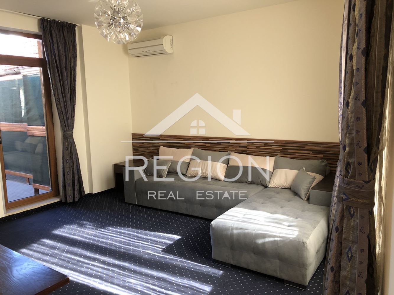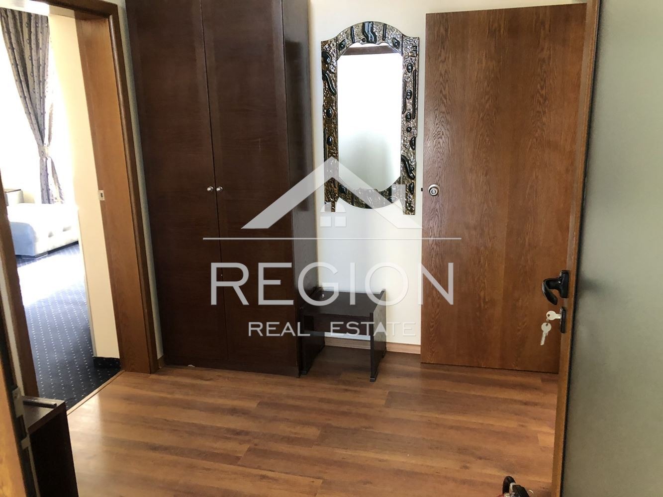 Агенция за недвижими имоти Регион предлага на Вашето внимание тристаен с НОВО обзавеждане апартамент в ЛУКСОЗНА СГРАДА С ЛУКСОЗНИ ОБЩИ ЧАСТИ в Идеалния център на гр.Шумен. Жилището се състои от всекидневна с отделна кухня напълно оборудвана с всичко необходимо за едно домакинство (кафе машина, кана за топла вода, вградена фурна с котлони и ширм, хладилник, пералня ВИСОК КЛАС, както и посуда) , спалня, баня-тоалет и тераса. ТРИ КЛИМАТИКА, апартамента се отоплява и охлажда с ВИСОК КЛАС ААА+ климатици във всяка стая! Отдава се дългосрочно и е подходящо за работещи, двойка, или сам човек. Намира се в близост до автобусни спирки, хранителни магазини, детски градини и площадки и др. При интерес и повече въпроси относно имота обадете се на посочените телефони и цитирайте номер на оферта!