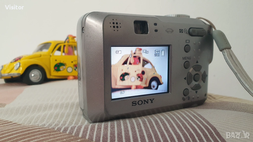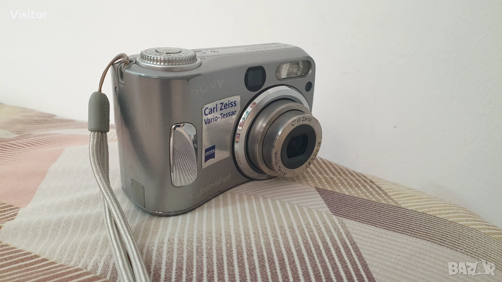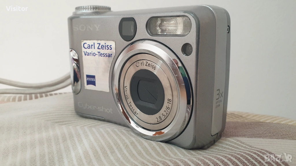 Моля,прочетете изцяло обявата за да видите снимки показващи състоянието на фотоапарата и снимки правени със самият него.Фотоапарата е със красив сребрист цвят и много запазен външен вид.Предлагам на Вашето внимание този компактен, с лесно боравене на менюто фотоапарат на марката SONY .Изключително бърз автофокус съчетан с 4,1 МрХ матрица и светлосилен обектив 39- 117 мм на Carl Zeiss и 3x оптичен зуум прави невероятни снимки с наситена цветност и нюанси на изображението присъщи на SONY. Друго важно предимство е вграденият визьор който може да се използва в много слънчеви дни или когато искате да изключите дисплея за съхранение на енергията на батерите. Светкавицата работи отлично и осигурява направата на качествени снимки и в стайни помещения. Фотоапарата работи с най-разпространените батерии клас АА/ има ги във всеки магазин - за предпочитане е да са алкални или презареждаеми.Към фотоапарата предлагам - 2бр. нови алкални батерии, карта памет,която е с капацитет за записване на 2043 снимки,нов четец за картата памет.Фотоапарата има връвка за по лесно носене и правене на снимки и мек красив калъф за безопасно пренасяне. Ето и снимките правени с това фотоапаратче на дневна светлина и на светкавица в стая. При интерес от Ваша страна изпращам чрез офис на куриерска фирма ЕКОНТ с опция - преглед и тест.