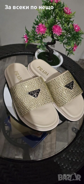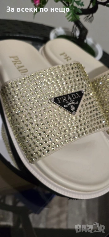 Prada Дамски Бежови Чехли С Кристали🩴Дамски Чехли С Камъни В Бежов Цвят Код E1305 → Обява 54135716