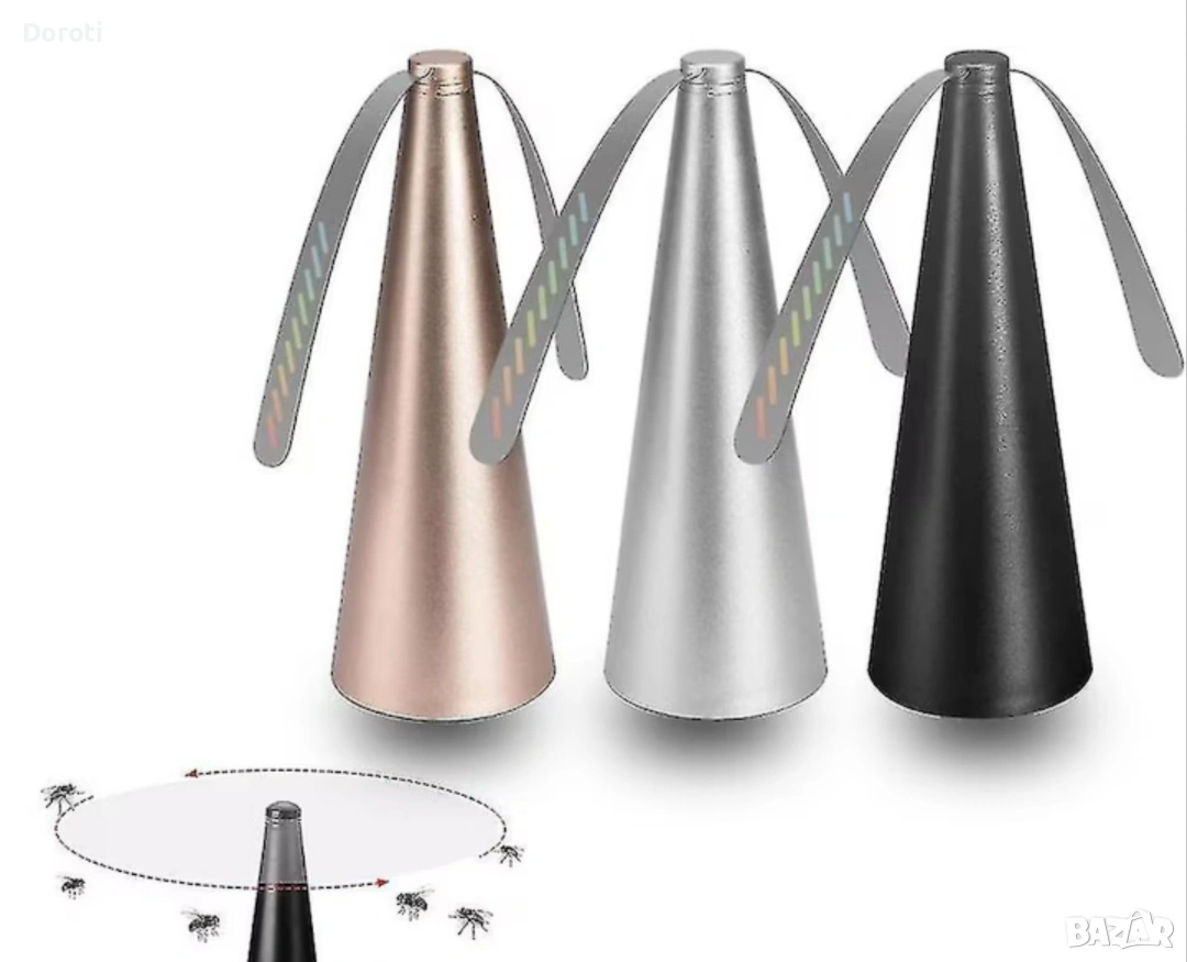 Технология: Устройството има въртящи се меки перки с холографски отражателни ленти, които светят и плашат мухите, предпазвайки храната ви.