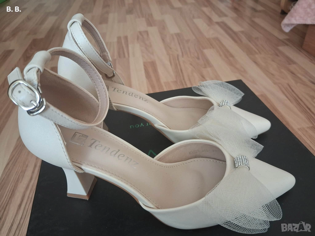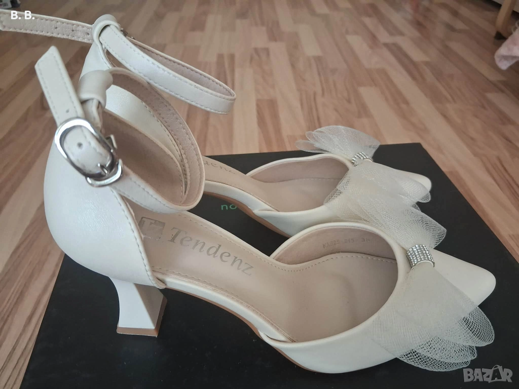 Официални дамски обувки с панделка обувани веднъж по повод. В отлично състояние са и нямат забележки. 37 номер са, но са носени от крак с номер 38.