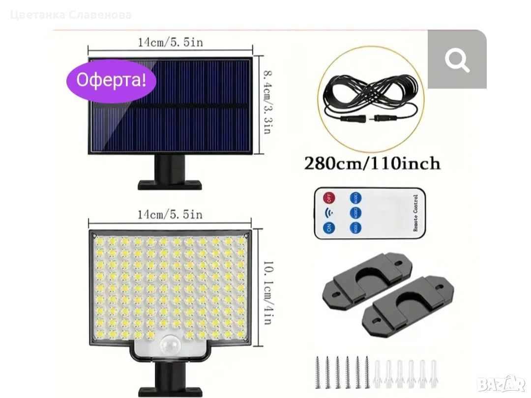 ✔ Включен соларен панел и кабел – позволява ефективно зареждане през деня, като през нощта осигурява дълготрайно осветление.