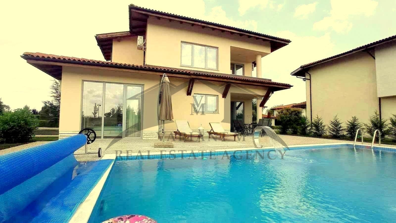 Предлагаме ви луксозна, новопостроена, двуетажна къща със собствен басейн, позиционирана в затворен комплекс на няколко километра от гр. Балчик и к.к. Албена.