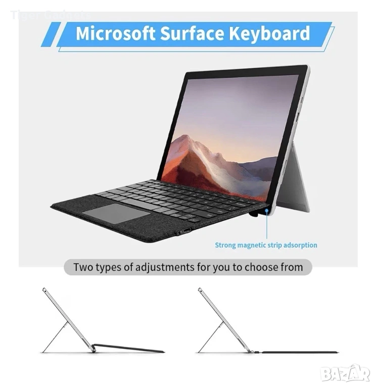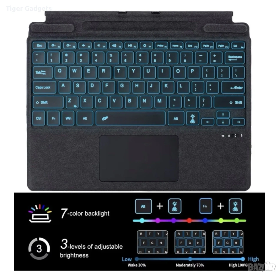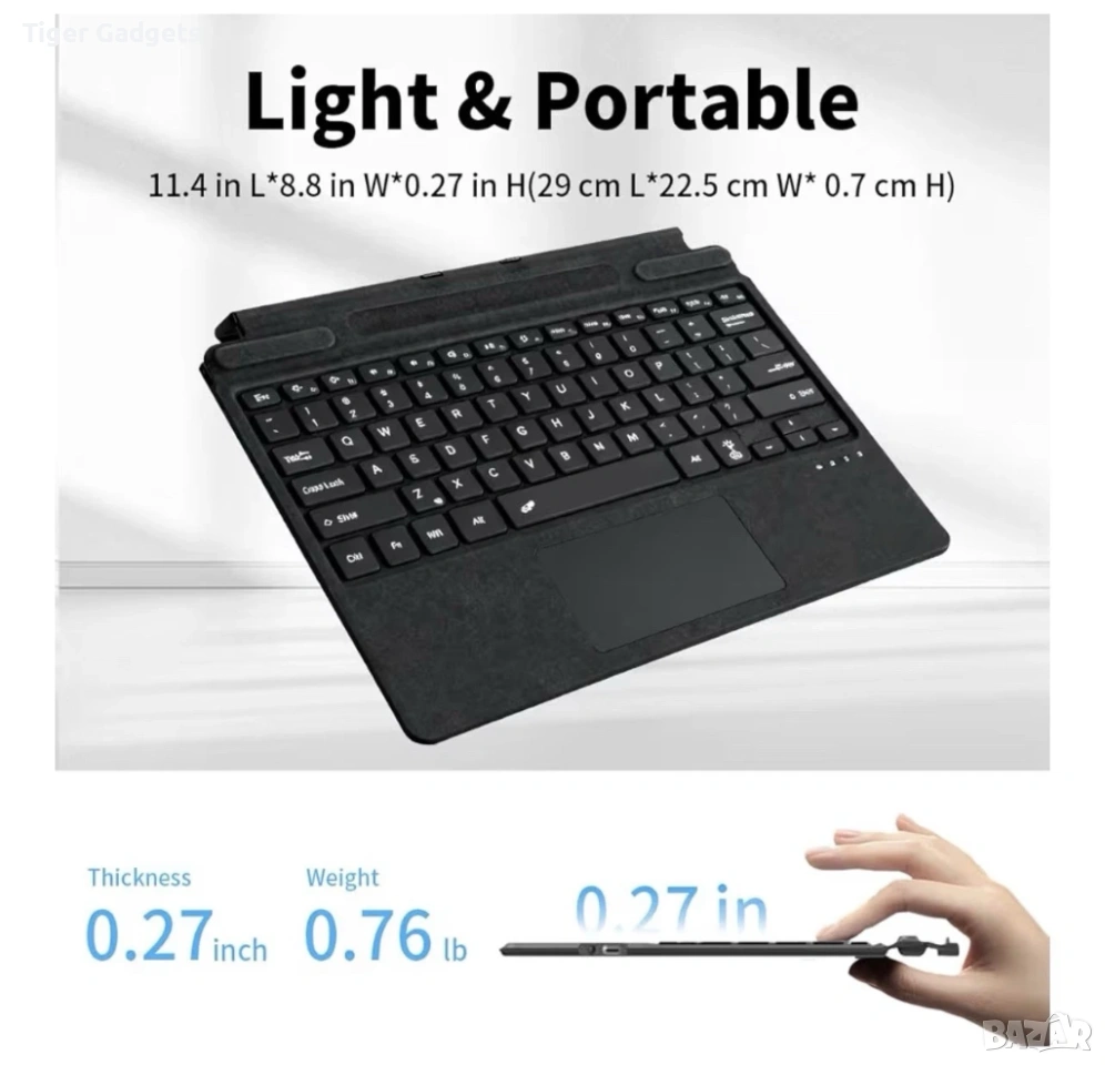 Seagtigau Surface TZ-2089D е ултра тънка безжична клавиатура с тъчпад, съвместима с Microsoft Surface Pro 11/10/9/8/X (13"), която превръща таблета в удобен лаптоп за работа и ежедневна употреба.