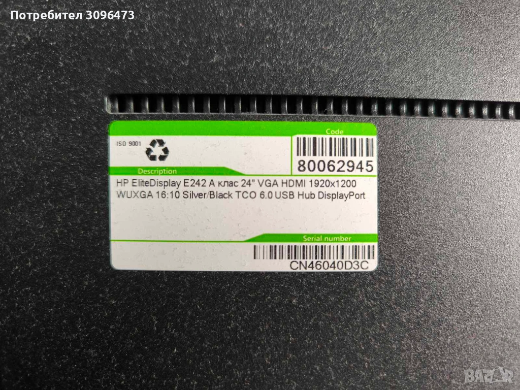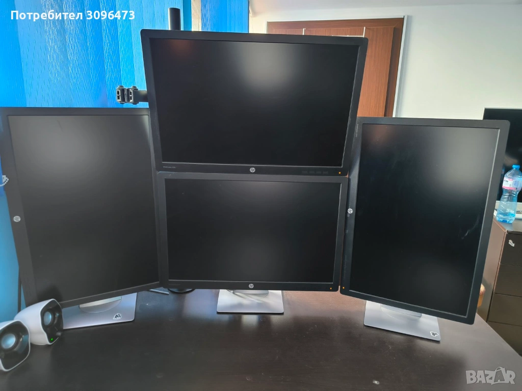 station 4 монитора + стойка. Мониторите са HP Elite Display E242 Клас А 24‘‘ VGA HDMI 1920x1200 WUXGA 16:10 Silver/Black
