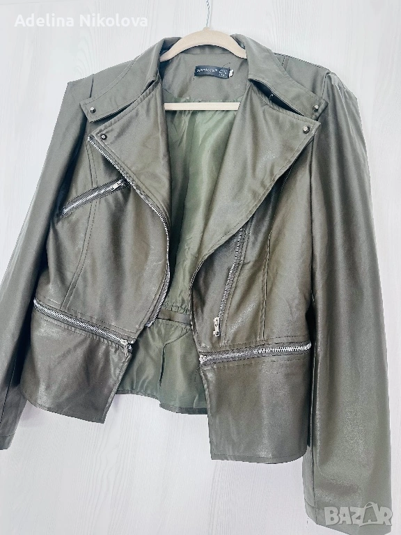 Кожено яке маслено зелен цвят → Обява 54136369