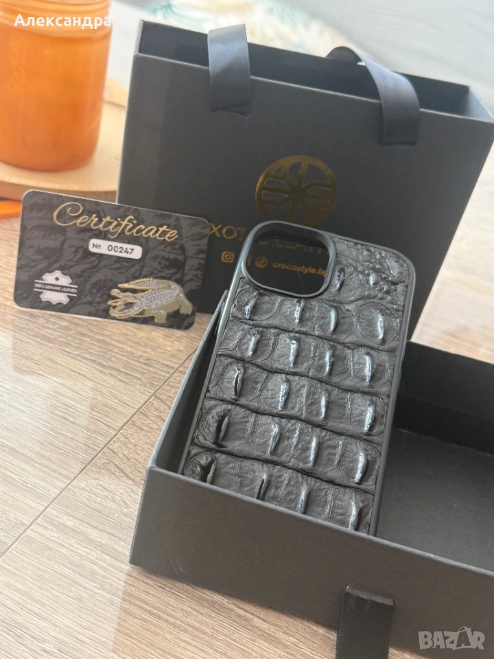 Прецизно изработен калъф от естествена крокодилска кожа. Отличава се с уникална текстура, здравина и перфектно прилягане. Подходящ за ежедневна употреба с усещане за лукс. Със сертификат за качество.