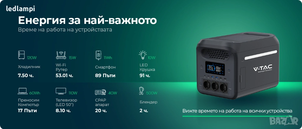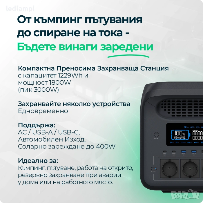 1800W Преносима Захранваща Станция с LiFePO4 Батерия и Wi-Fi