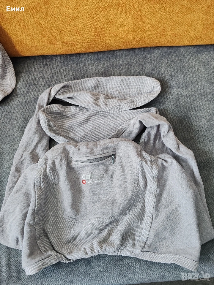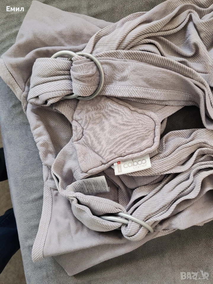 Нов слинг. Не е използван. Само отворен за преглед. Без кутия, тъй като големия я скъса. Единственият по рода си слинг Caboo е удобен и лесен за използване, както за новороденото ви, така и за малчуганите, по всяко време, навсякъде и както решите да го използвате. Удобен и на закрито – ще ви позволи да прекарвате деня си по старо му, като в същото време осигурява нужното спокойствие на детето. Основни функции и предимства: - Меките широки презрамки с фиксирана кръстоска разпределят теглото равномерно като намаляват напрежението в рамената и гърба на носещия; - Сигурните презрамки придържат главата, врата и гръбначния стълб на бебето стабилни; - Нов по-голям и подсилен заден панел за допълнителна подкрепа; - Удобен джоб отпред закопчаващ се с цип; - Нов подплатен маншет, осигуряващ по-голяма подкрепа за бебето в първите месеци; - Позиция люлка, подходяща за кърмене; - Поза „жабка“ / „М“ - най-благоприятната за правилното оформяне на тазобедрените стави на бебето; - Един размер за всички носещи, лесно регулиращ се с 2 халки, за да пасне на всички: само издърпайте плата през халките за затягане; - Изключително лесен за слагане, без омотаване и сложни възли; - Предвиден за бебета с тегло от 2.3 до 14.5 кг, подходящ за новородени и дори недоносени бебета; - Лесен за използване и при по-големи деца. Слингът Caboo е изработен от 98% органичен памук и 2% полиестер.