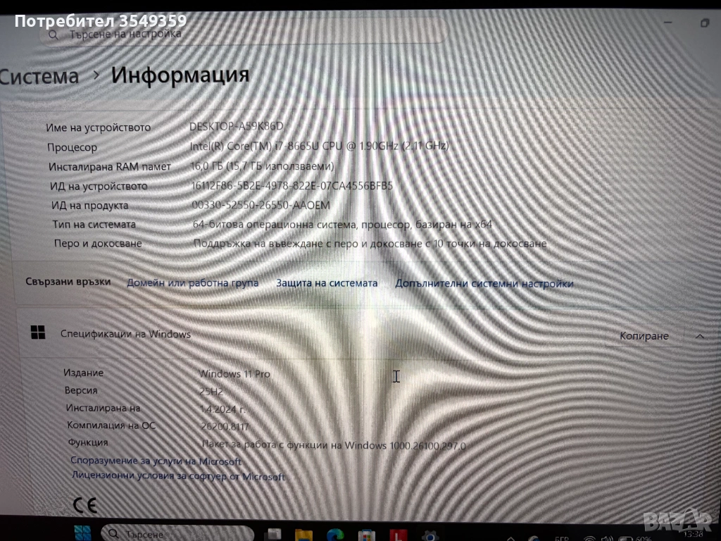Процесор: Intel Core i7-8665U (4 ядра, 8 нишки, до 4.80 GHz) – перфектен за тежка работа.