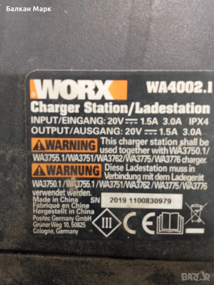 Захранване: Всички оригинални адаптери Worx 20V.