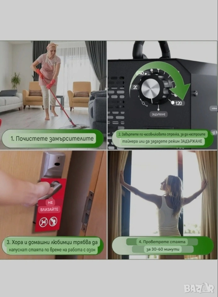 !!!!!!Хората и домашните любимци трябва да напуснат стаята и да затворят вратата и прозорците по време на пречистване!!!!!!