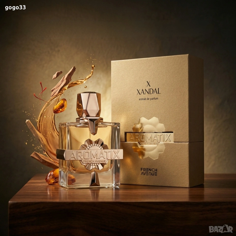 Парфюм за жени и мъже French Avenue Aromatix X-Xandal - Магия от ванилия, ром и шоколадов трюфел Цена: 35 евро Формула: Extrait de Parfum (парфюмен екстракт) за интензивност и отлична трайност. Обем: 100 мл. Ароматна пирамида: Връхни нотки: Мадагаскарска ванилия, Бурбонска ванилия, Ванилов хайвер. Средни нотки: Ром, Жасмин, Ванилия, Шоколадов трюфел. Базови нотки: Абсолю ванилия, Тонка боб, Уд, Пачули, Карамел. Препоръки за носене: предимно вечерни изяви и хладни сезони за най-добър ефект. Подходящ за хора, които търсят дълбок гурме-ванилов профил с дървесно-смолисти акценти.