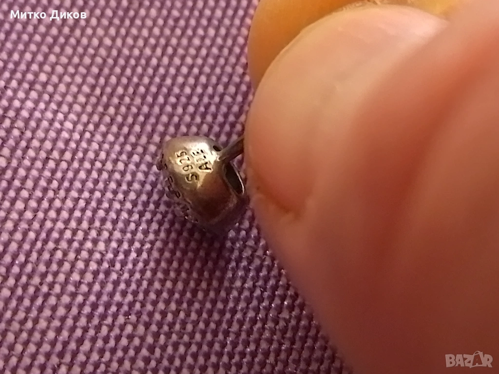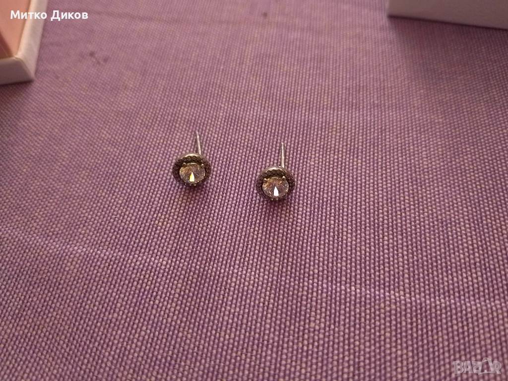 Пандора сребърни обеци нови с камък → Обява 54137147