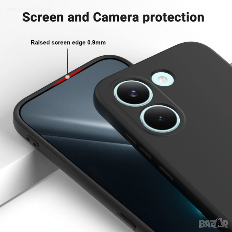 Защита на камера и екран с повдигнати ръбове: Повдигнатите ръбове около камерата и екрана предпазват най-чувствителните зони от драскотини при поставяне на плоска повърхност.