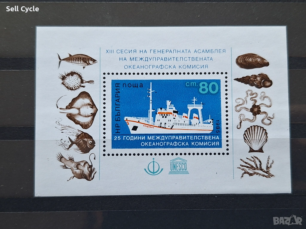 ✅БЛОКОВА МАРКА - 25 Г. ОКЕАНОГРАФИЯ❗ → Обява 54137202